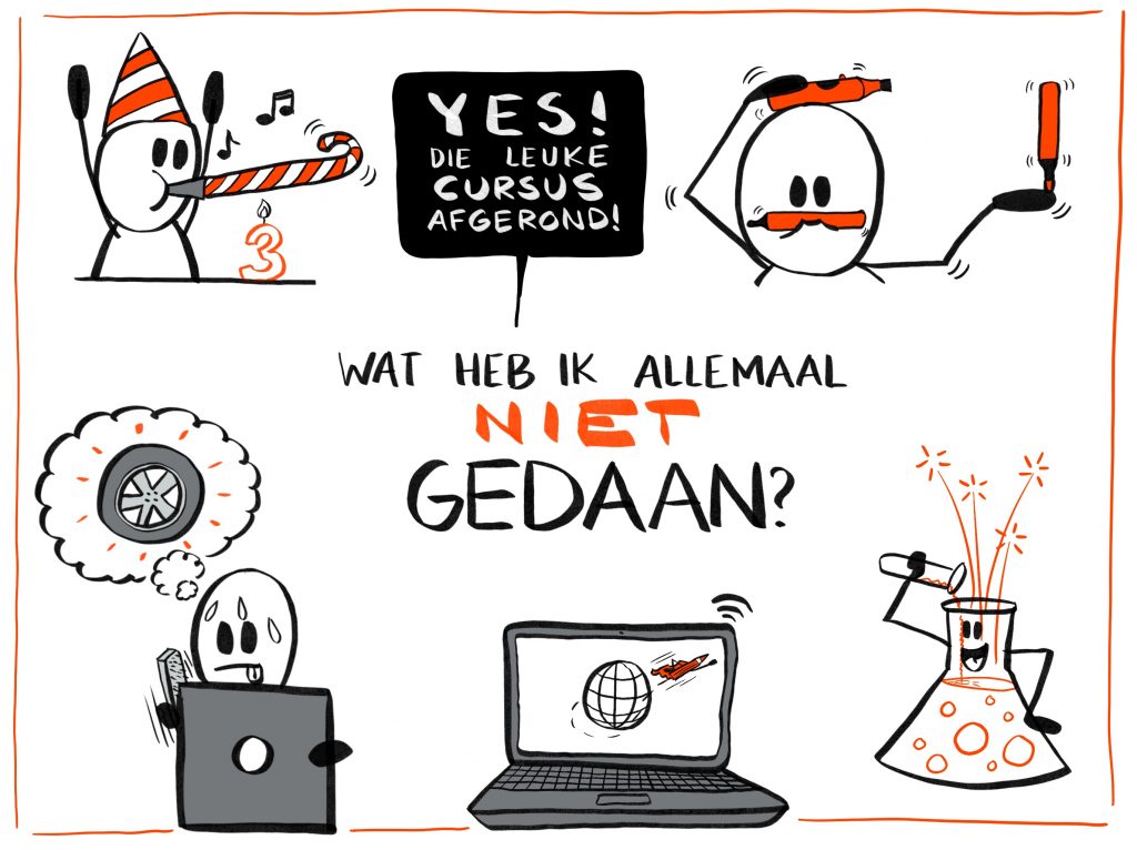 Dat een reflectiemomentje heel nuttig is. Maar dat wist ik al. En toch is het goed om dat keer op keer weer te ervaren en tegen mezelf te zeggen. En dat ik zo gelijk even wat dagen in mijn agenda ga blocken. Dagen om “te klooien”, dagen om “cursussen te doen” en dagen om “ideeën uit te werken”. En dan ben ik benieuwd hoe mijn tekening “Wat ik NIET heb gedaan” er bij het volgende reflectiemoment uitziet 🥳