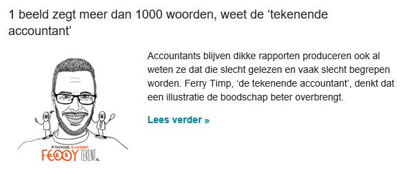 Met die vraag belde Rutger Vahl mij op. Hij gaf aan dat hij schrijft voor de website Accountancy Vanmorgen en hij had inmiddels al een aantal tekeningen via LinkedIn voorbij zien komen van mij. Het antwoord op de vraag was: ja, ik ben registeraccountant! Daarna maakten we een afspraak voor de volgende dag, voor een kort telefonisch interview.