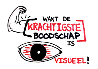 Tekenen is zo krachtig en effectief omdat het over visuele communicatie gaat! En ons menselijk brein werkt nu eenmaal erg visueel. Zeker in een wereld waar we veel gebruik maken van ‘abstracte woorden of containerbegrippen’ kan een tekening heel erg goed helpen om duidelijk te maken wat u daar nu precies mee bedoelt.